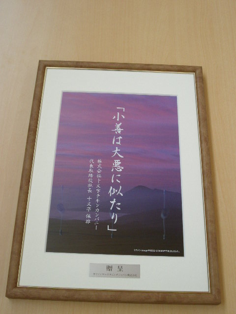 もしかして、座右の銘というのは、自分でオリジナルのものを作らなきゃいけなかったのかな?と心細くなったりして‥。ほかの社長さんの中には、オリジナルとおぼしきものがあったなあ‥。早とちりしたかな。