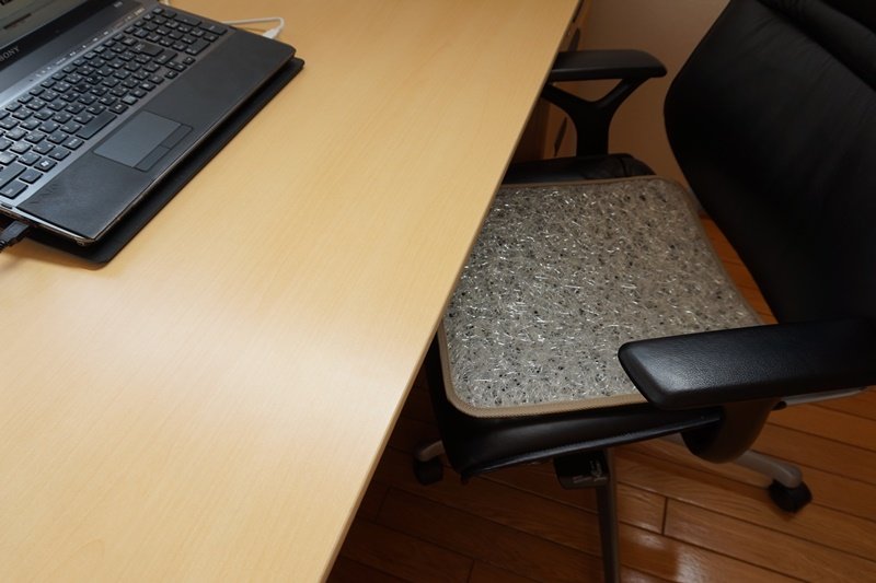 さて、熱くなってきているこの頃、エアコン26℃設定だと社長室の椅子は蒸します。こうして通気性のよいものを敷いて幾分いいのですが、社内では座布団を敷くのは原則禁止なので、帰る前には撤収してます。椅子は会長のお下がりなので大事にします。