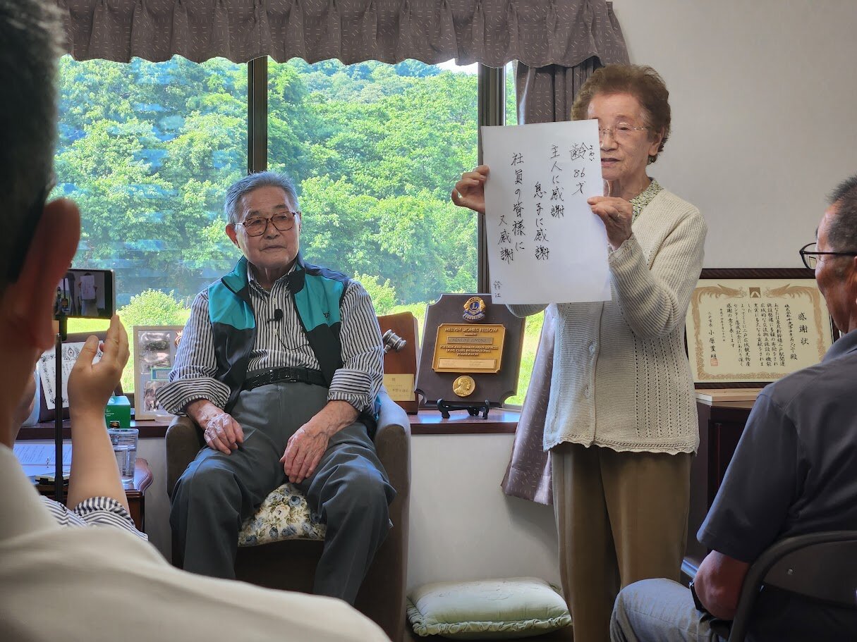 しかし、最後に締めてくれたのが母でした。「齢(よわい)86才 主人に感謝 息子に感謝 社員の皆様に又感謝 鈴江」。